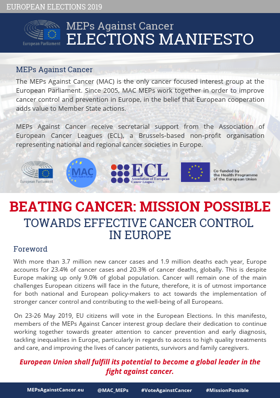 BEATING CANCER: MISSION POSSIBLE – MAC 2019 Manifesto